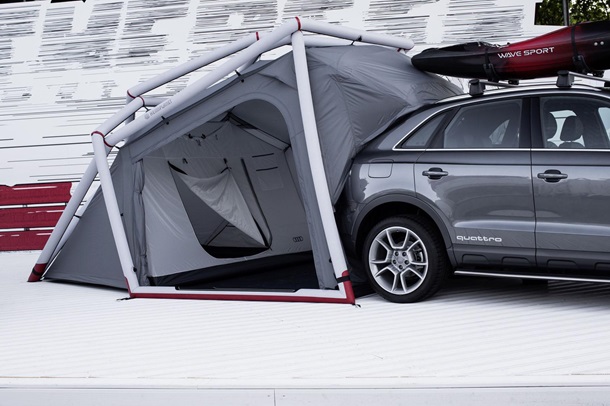 Конструкция способна выдерживать ветер скоростью до 70 километров в час. Палатка может быть установлена как отдельно от машины, так и прикреплена к открытой задней двери кроссовера. Прототип Audi Q3 Camping Tent оснастили двухлитровой дизельной "турбочетверкой", развивающей 177 лошадиных сил и 380 Нм крутящего момента. Остальные технические подробности не сообщаются.