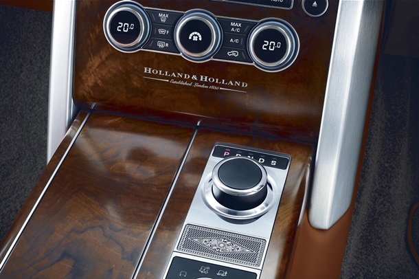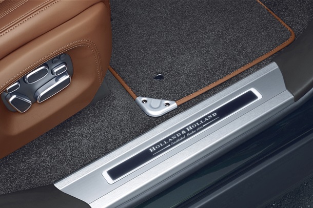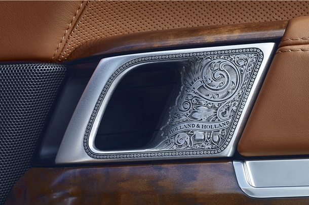 А также, набор вставок со специальной гравировкой Holland & Holland, которую марка использует при создании своих ружей (рядом с селектором КПП, над бардачком и на ручках дверей).